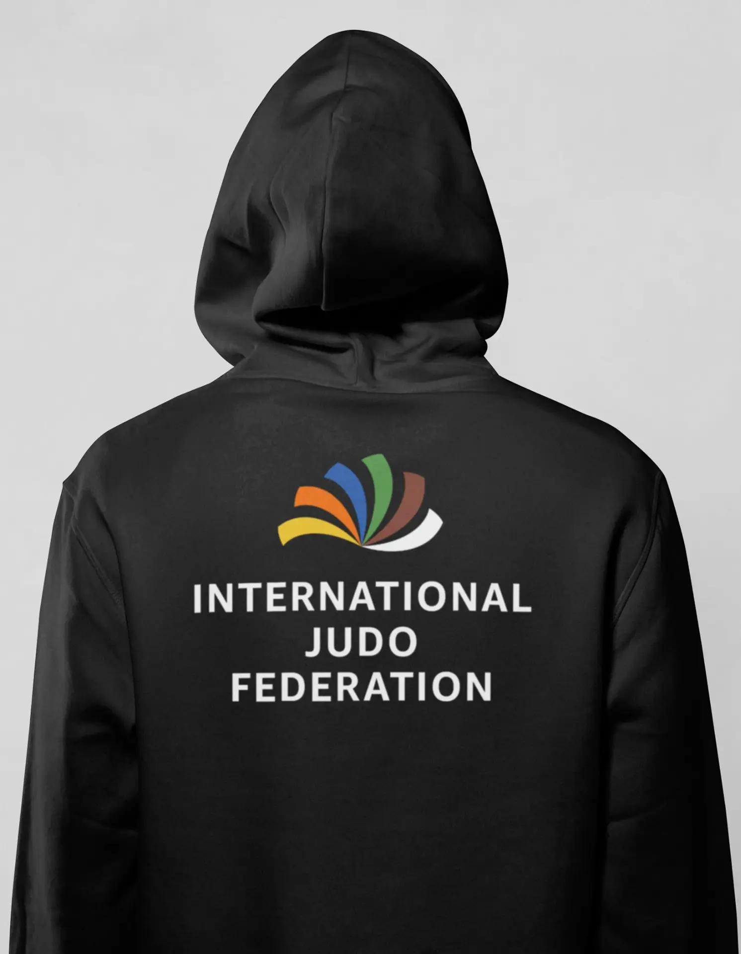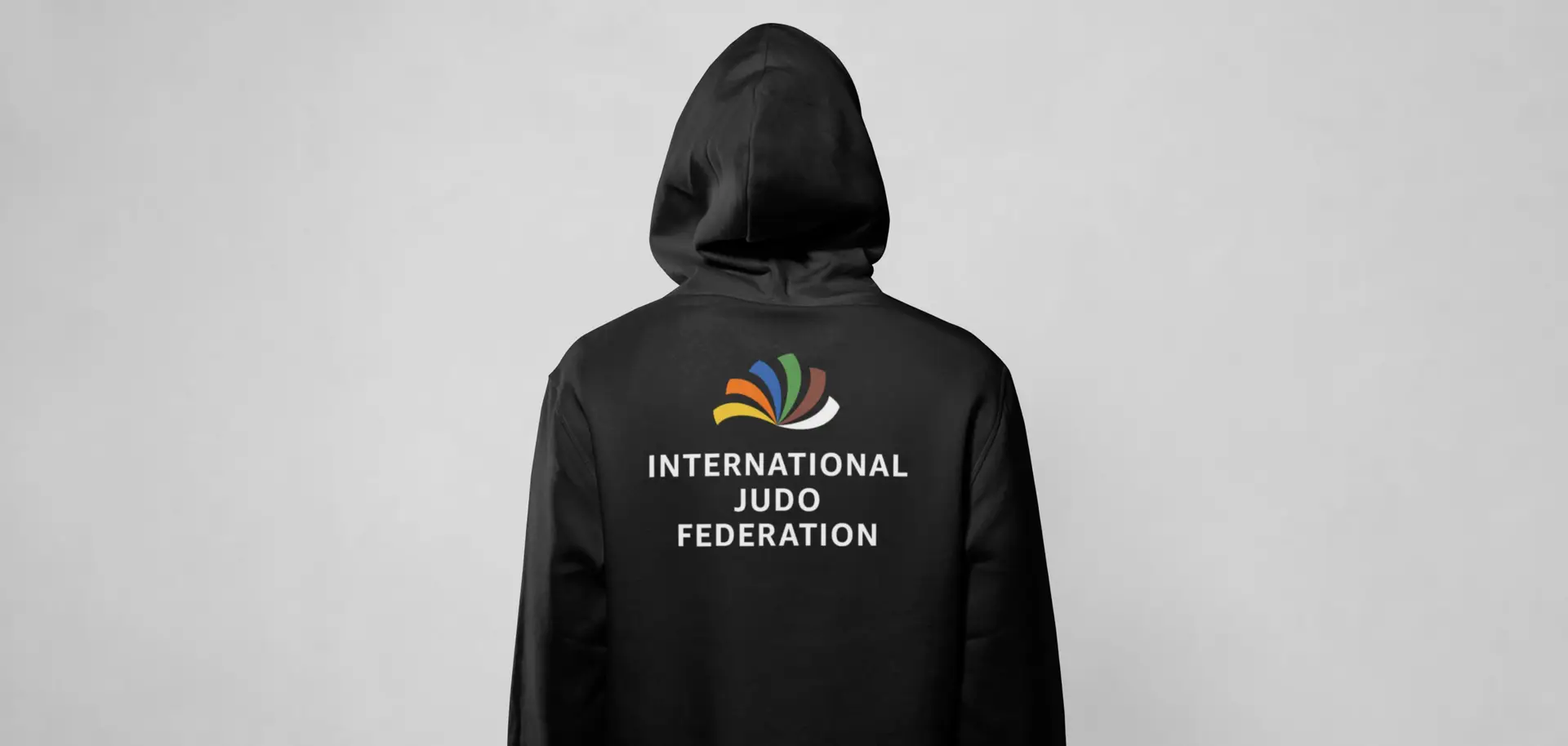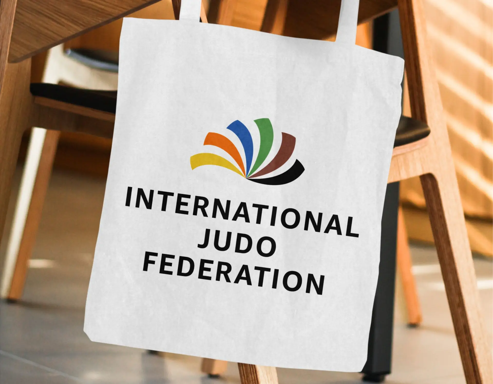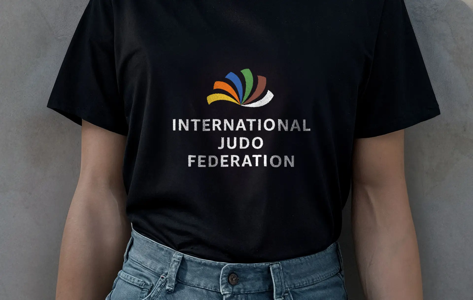 The words “International Judo Federation” are written below the belts in different colors, set in the Amazon Ember typeface, a font that brings seriousness and credibility to the federation.