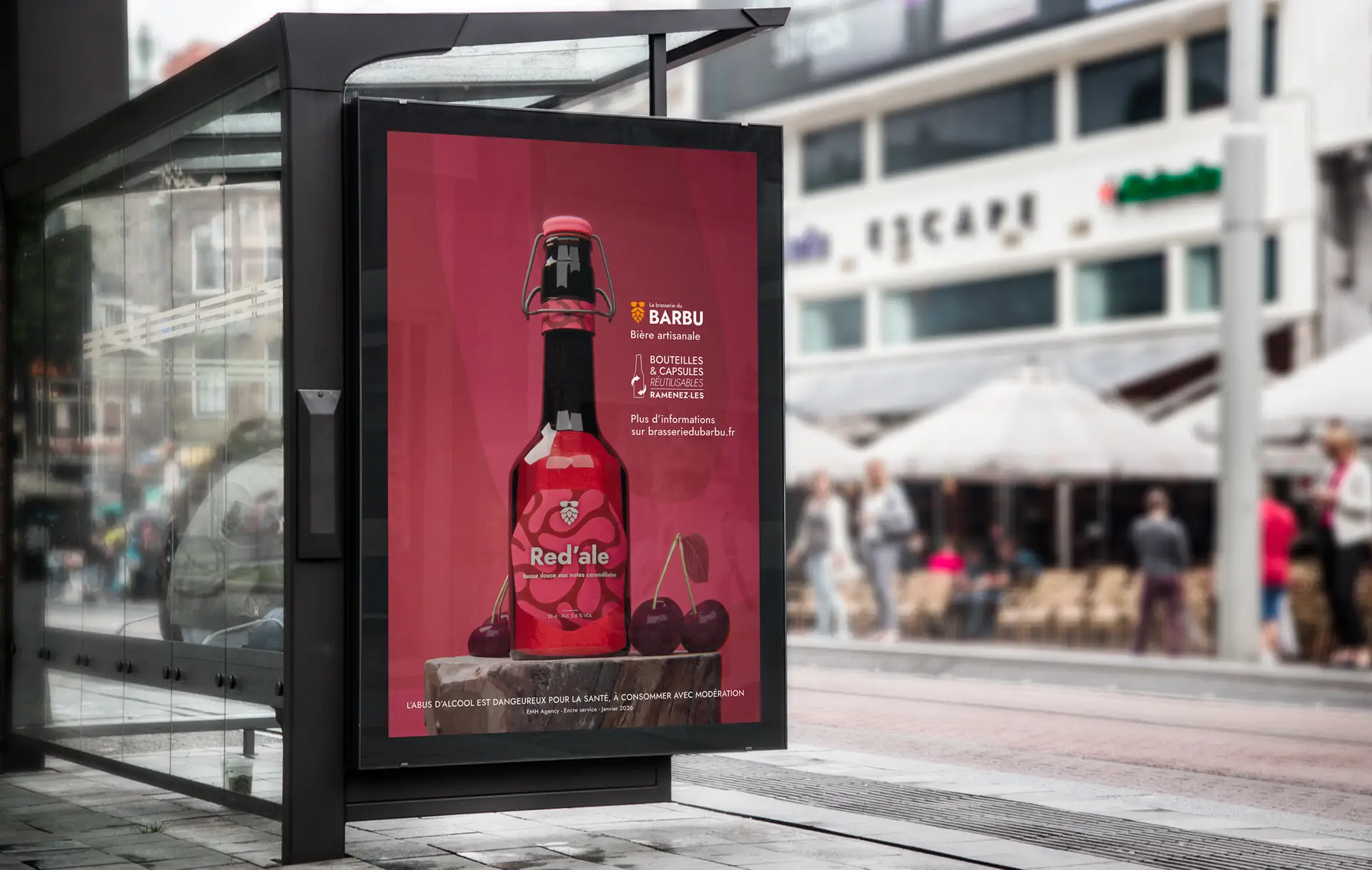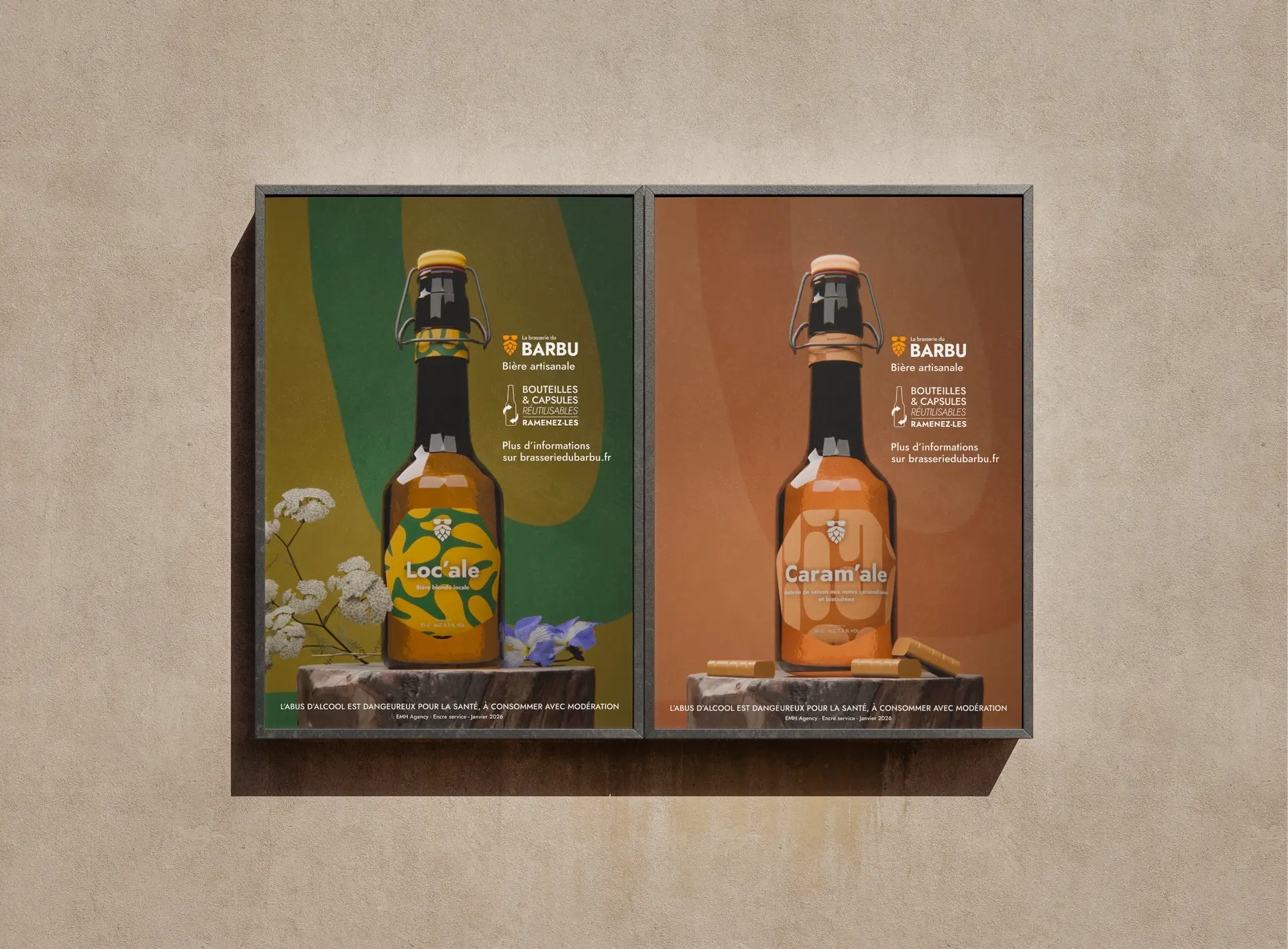 The project aimed to reposition its visibility: enhancing its commitments (local sourcing, controlled fermentation, environmental responsibility) and professionalizing its image by integrating the existing logo, notably the famous beer moustaches.