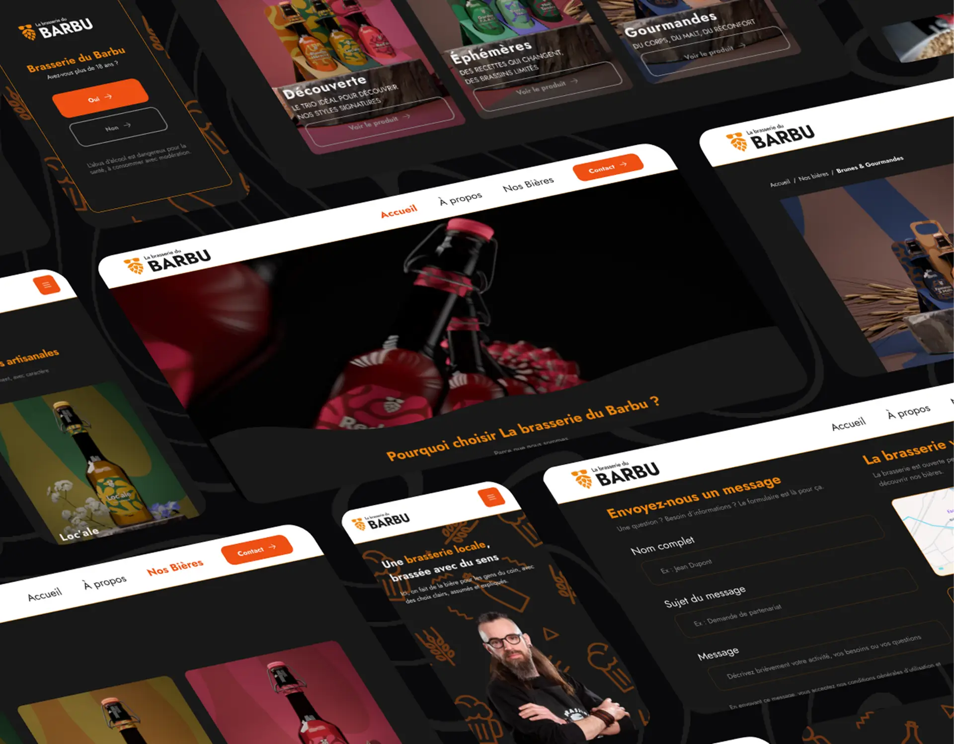 The choice of a orange accent, referencing beer, combined with a black background, creates contrast, character, and a premium dimension.